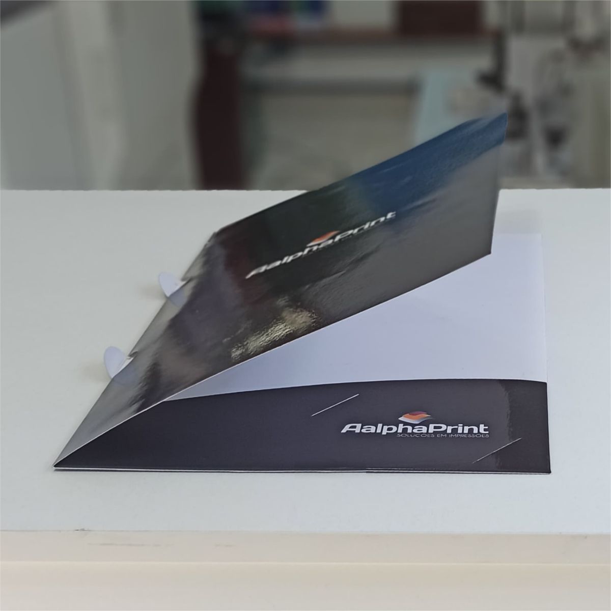 As pastas personalizadas são ideais para enviar aquele orçamento, proposta ou material para seus clientes. Podem ser feitas com bolso ou com orelha e o acabamento em laminação brilho ou fosca.